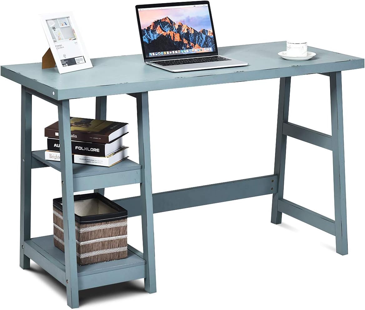 47.5 computer desk trestle desk reading study workstation w/ shelf & 2 drawers. 5 out of 5 stars. Costway 47'' computer desk w/ 3 storage cubes & open bookcase home office. Designs2go trestle desk , weathered white. That turned out to be part of the protective packing.